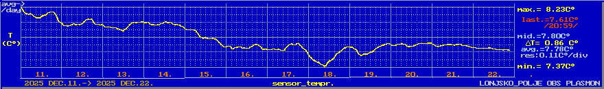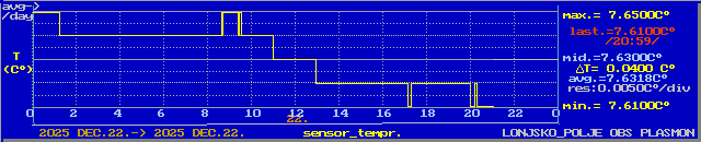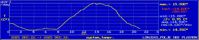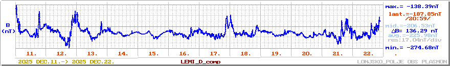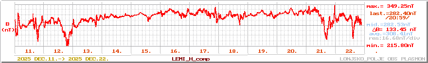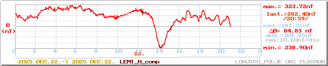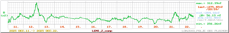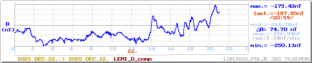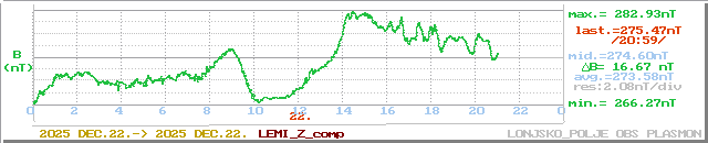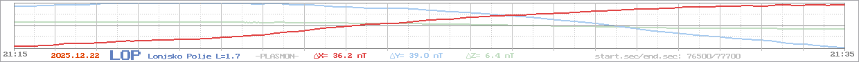 | Geomagnetic data from Lonjsko Polje Obs. /by Plasmon Lemi system/ Latest sec. data: /20 minutes/ (refresh in every 15 minutes) ![]() 1